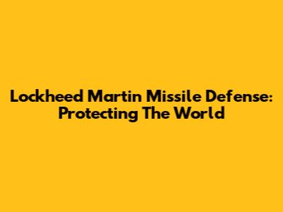 Lockheed Martin Missile Defense: Protecting The World