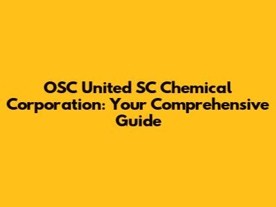 OSC United SC Chemical Corporation: Your Comprehensive Guide