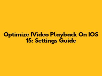 Optimize IVideo Playback On IOS 15: Settings Guide
