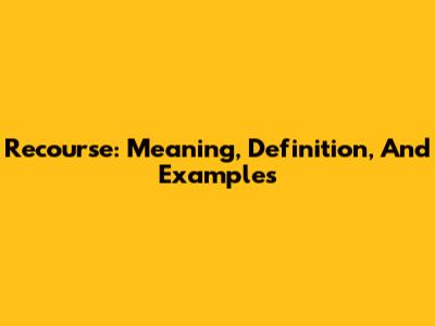 Recourse: Meaning, Definition, And Examples