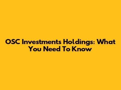 OSC Investments Holdings: What You Need To Know