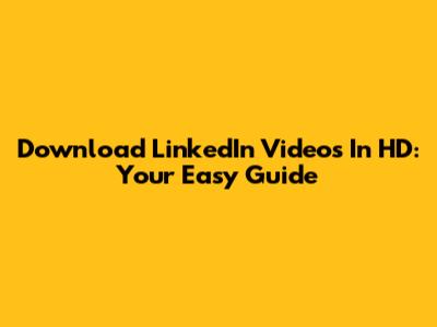 Download LinkedIn Videos In HD: Your Easy Guide