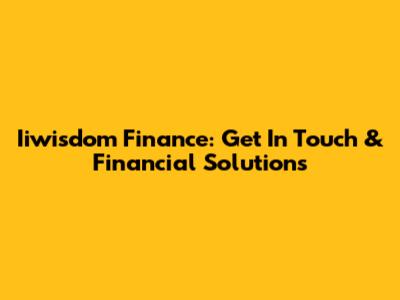 Iiwisdom Finance: Get In Touch & Financial Solutions