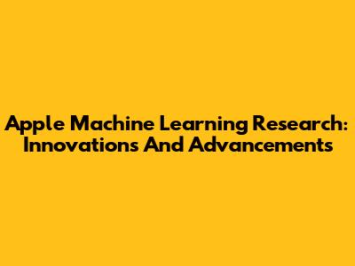Apple Machine Learning Research: Innovations And Advancements