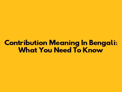 Contribution Meaning In Bengali: What You Need To Know