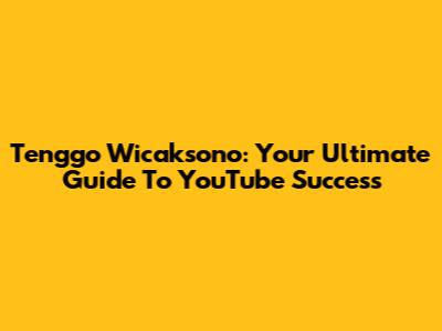 Tenggo Wicaksono: Your Ultimate Guide To YouTube Success