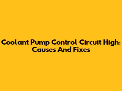 Coolant Pump Control Circuit High: Causes And Fixes