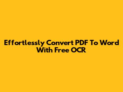 Effortlessly Convert PDF To Word With Free OCR