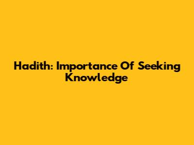 Hadith: Importance Of Seeking Knowledge