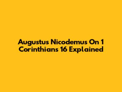 Augustus Nicodemus On 1 Corinthians 16 Explained