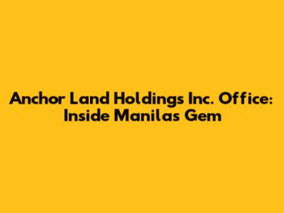Anchor Land Holdings Inc. Office: Inside Manila's Gem