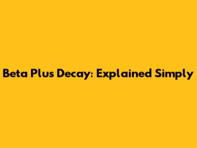 Beta Plus Decay: Explained Simply