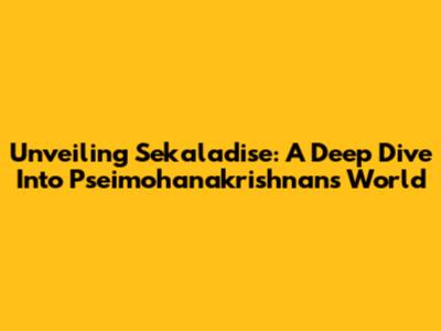 Unveiling Sekaladise: A Deep Dive Into Pseimohanakrishnan's World