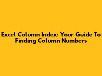 Excel Column Index: Your Guide To Finding Column Numbers