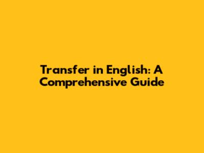 Understanding the Basics of "Transfer"