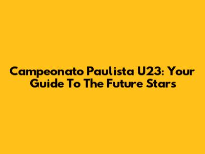Campeonato Paulista U23: Your Guide To The Future Stars