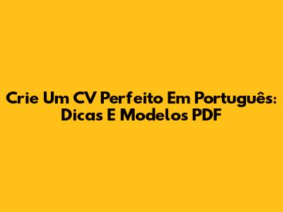 Crie Um CV Perfeito Em Português: Dicas E Modelos PDF