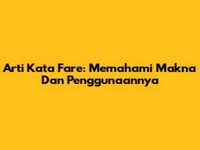 Arti Kata Fare: Memahami Makna Dan Penggunaannya