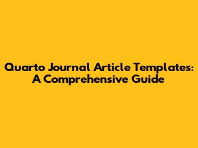 Quarto Journal Article Templates: A Comprehensive Guide