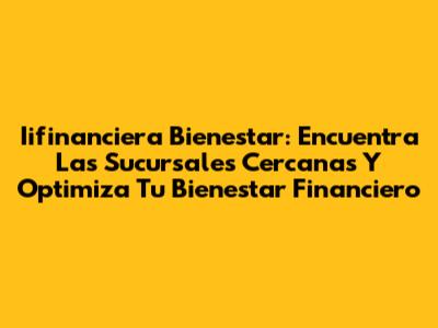 Iifinanciera Bienestar: Encuentra Las Sucursales Cercanas Y Optimiza Tu Bienestar Financiero