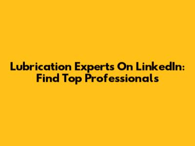 Lubrication Experts On LinkedIn: Find Top Professionals