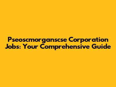Alright, guys, let's dive into the world of Pseoscmorganscse Corporation jobs. Whether you're fresh out of college or a seasoned pro looking for a change, navigating the job market can feel like trying to solve a Rubik's Cube blindfolded. But fear not! This guide is designed to give you the inside scoop on everything you need to know about landing a gig at Pseoscmorganscse. We'll cover everything from understanding what the company does to nailing the interview process. Consider this your go-to resource for all things Pseoscmorganscse career-related.