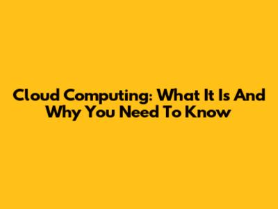 Cloud Computing: What It Is And Why You Need To Know
